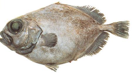 Average length 35-45 cm, average weight about 1 kg. Grey with large dark spots, more prominent in small fish. Scales very small, easily dislodged. Distinguished from other oreos by the very small scales, small fin spines and generally rounded, smooth body form. Occurs around the south of New Zealand, 600 m to over 1000 m. distribution tends to overlap black oreo dory and spiky oreo dory. New Zealand second most abundant oreo dory. Caught by deepsea trawling. Available all year. A moderate resource.