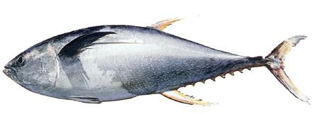 Average size 60-100 cm, reaching 200 cm, and an average weight of 30 kg. Cosmopolitan in tropical and subtropical seas. Migratory, pelagic. Metallic dark blue above, changing through yellow to silvery white on belly. Large fish have very long second dorsal and anal fins. Main fishing grounds north east of New Zealand between East Cape and North Cape where game vessels with trolling gear take small numbers and foreign longliners engage in a limited fishery for this species from January to March. A small resource.